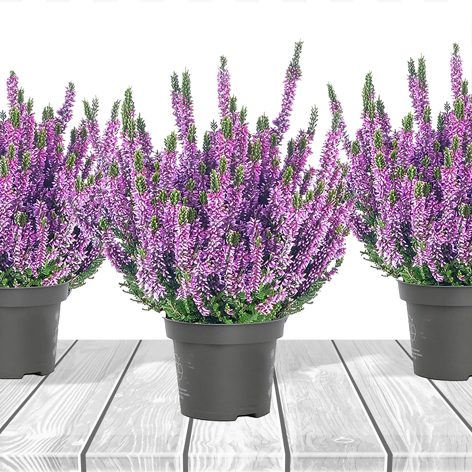 • Die violette Heidekrautpflanze ist eine besonders langlebige Pflanze, die ihre Blütenstände in Form von Knospen behäl. Mit diesem Set aus drei Pflanzen lässt sich ein kleines Heidekrautfeld anlegen.