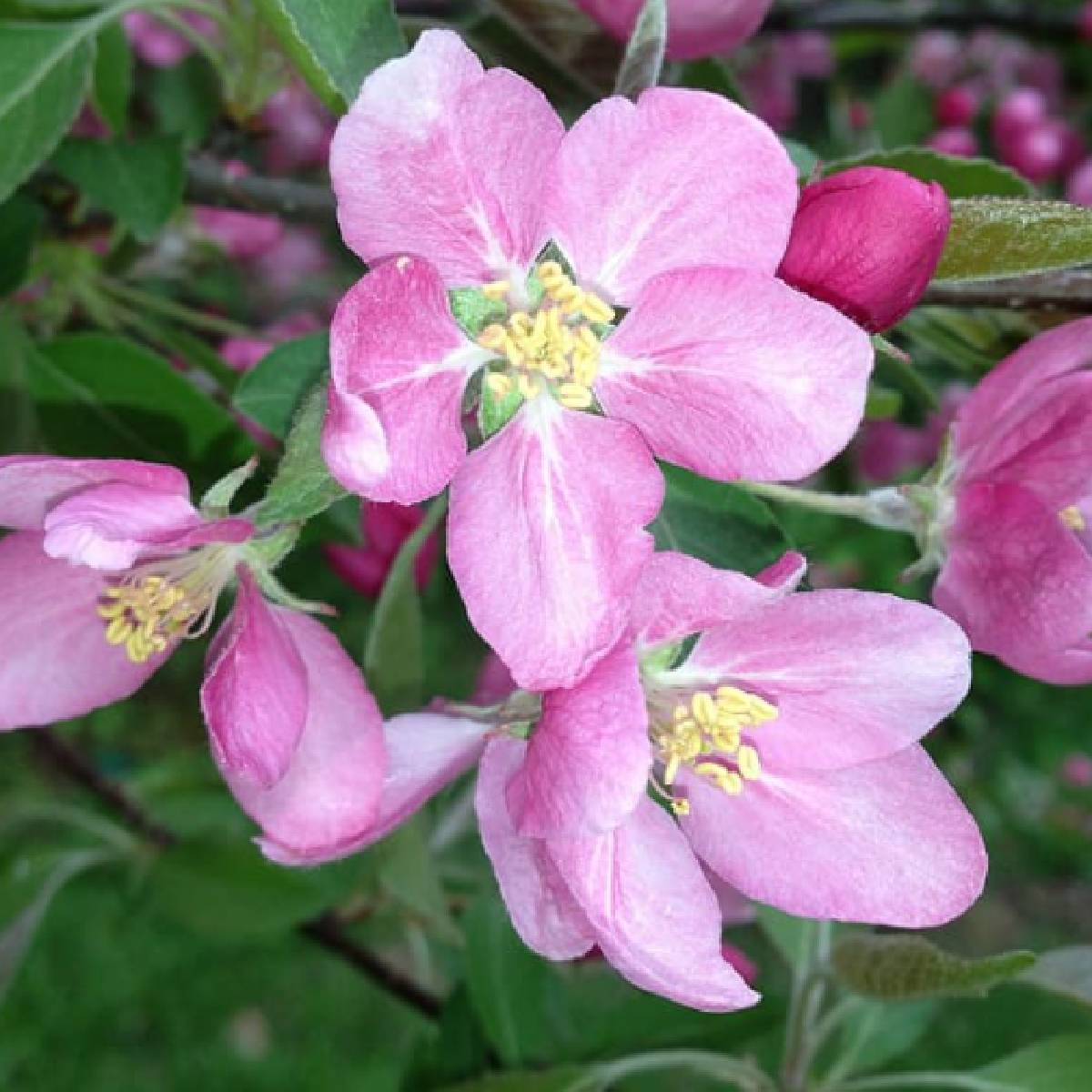 Der Apfelbaum Suncats blüht Ende März/Anfang April reichlich. Die späte Blütezeit schützt die zarten Blüten vor Frühlingsfrösten. Sie sind weiß-rosa, sehr dekorativ und attraktiv für bestäubende Insekten. Im Frühling wird der Apfelbaum zu einer natürlichen Zierde des Gartens. Die Sorte ist selbstbestäubend, jedoch erhöht das Pflanzen anderer Sorten in der Nähe deutlich den Ertrag und verbessert die Qualität der Früchte.
