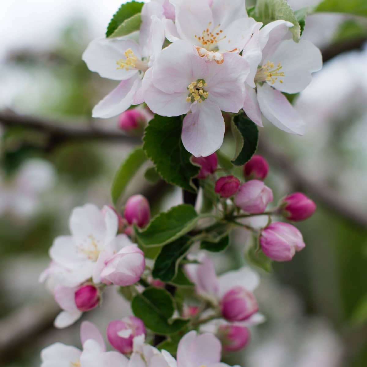 Der Himbeer-Apfelbaum, bekannt als Malinówka, ist einer der bekanntesten und erkennbarsten Obstbäume in polnischen Gärten. Er wächst mittelstark und bildet eine kugelförmige Krone, die mit der Zeit immer ausladender wird. Die Äste sind locker angeordnet, was eine gute Sonneneinstrahlung auf die Früchte begünstigt. Junge Setzlinge haben keine Probleme, sich an ihrem neuen Standort anzupassen, und beginnen relativ schnell zu fruchten. Während der Blütezeit ist der Baum mit weißen Blüten übersät, die für bestäubende Insekten attraktiv sind.