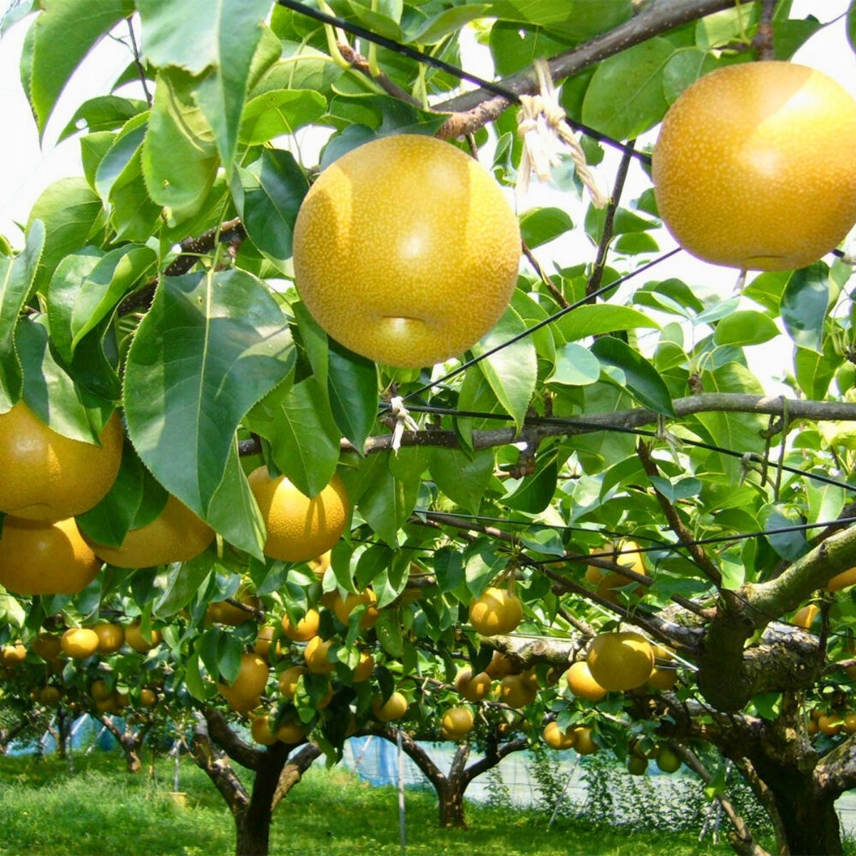 • Eine japanische Nashi-Sorte mit kugelförmigen, hellgelben Früchten und knackig-saftigem Fruchtfleisch. Sie reift Ende August und liefert regelmäßige Erträge. Die Früchte sind ideal zum Frischverzehr und können mehrere Wochen gelagert werden.