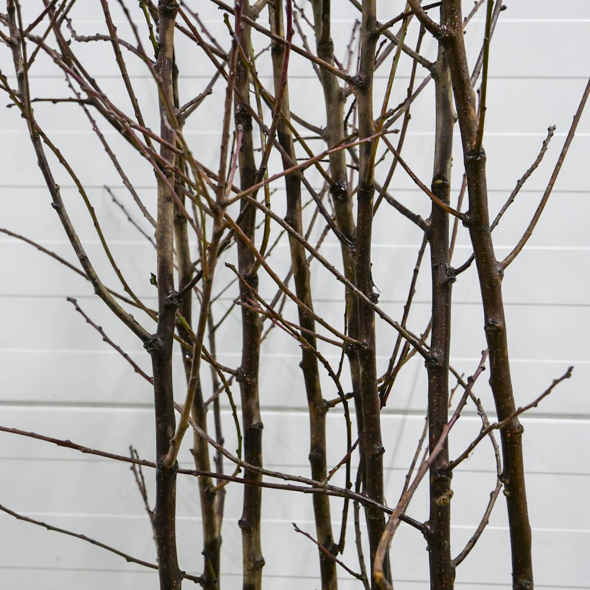 Der japanische Pflaumenbaum Afaska wächst mittelstark und erreicht unter günstigen Bedingungen eine Höhe von 3 bis 4 Metern. Die Krone ist breit, kugelförmig und dicht belaubt und kann durch regelmäßigen Schnitt leicht in gutem Zustand gehalten werden. Dank seines mittleren Wuchses und seiner guten Formbarkeit kann diese Sorte sowohl in Obstplantagen als auch in Hausgärten angebaut werden, wo sie oft auch als dekoratives Element dient. Die Blätter sind mittelgroß, dunkelgrün und bedecken die Krone dicht, was den ästhetischen Wert des Baumes erhöht.