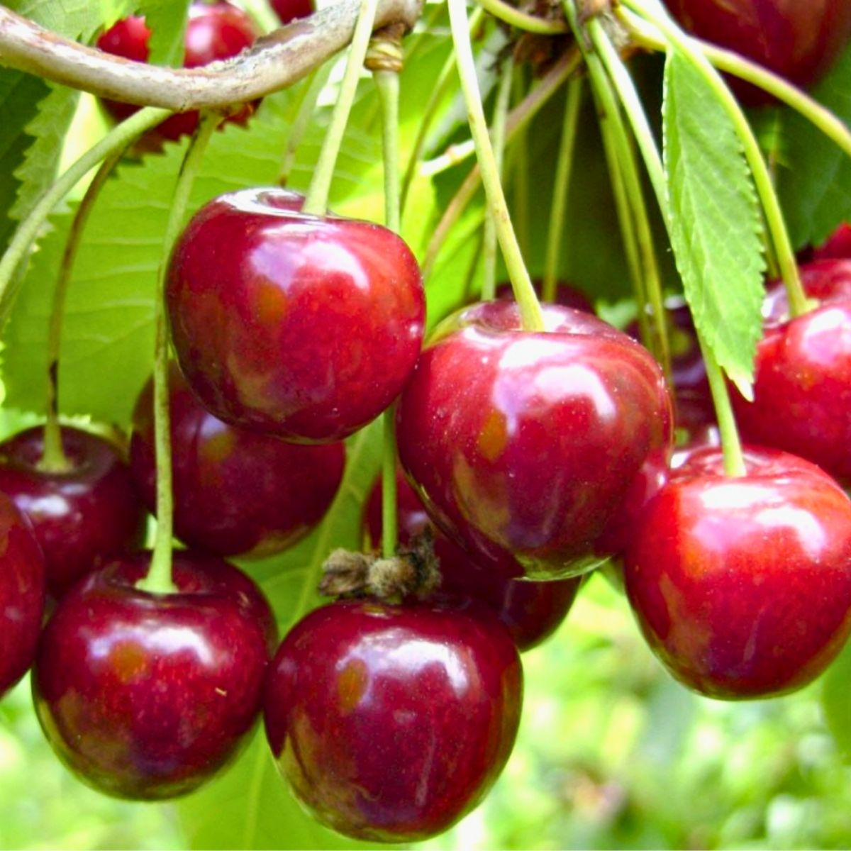 • Späte Sorte mit großen, fast schwarzen Früchten. Die Kirschen sind fest und knackig, sehr süß und glänzend; sie reifen gleichmäßig, platzen selten und vertragen kurzen Transport und Lagerung — eine bereichernde Wahl für Hausgärten und kleine Anlagen.