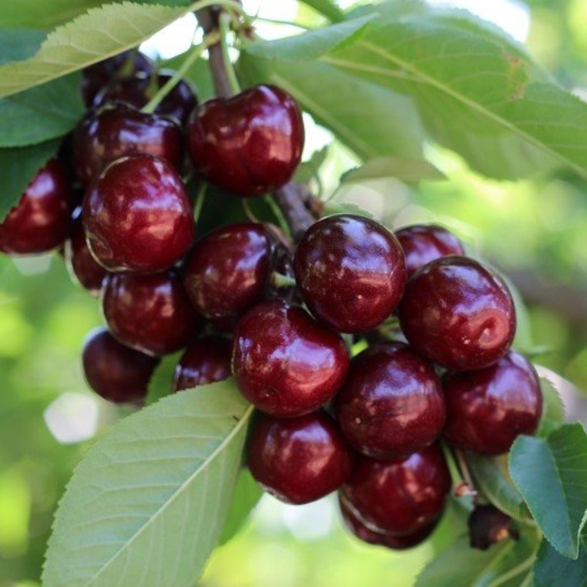 ‘Helena’ trägt regelmäßig und reich, besonders bei gleichmäßiger Bodenfeuchte und guter Präsenz von Bestäubern. Die Früchte haften fest an den Kurztrieben, fallen nicht vorzeitig ab und präsentieren sich „frisch vom Baum“ ausgezeichnet — ein vollwertiger Süßkirschgenuss in platzsparender Form.