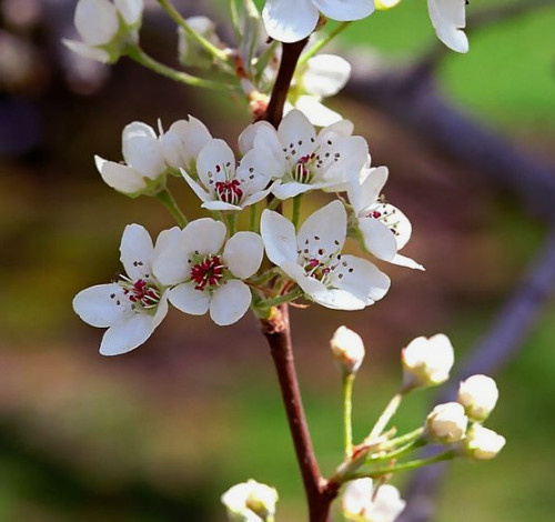 ‘Blanka’ blüht meist im mittleren Zeitraum. Die Blüten sind weiß, fünfbäutig, in Dolden angeordnet, mit zartem Honigduft; sie bedecken die Kurztriebe reich und locken Bestäuber stark an. In Vollblüte wirkt der Baum sehr dekorativ als helle „Wolke“.