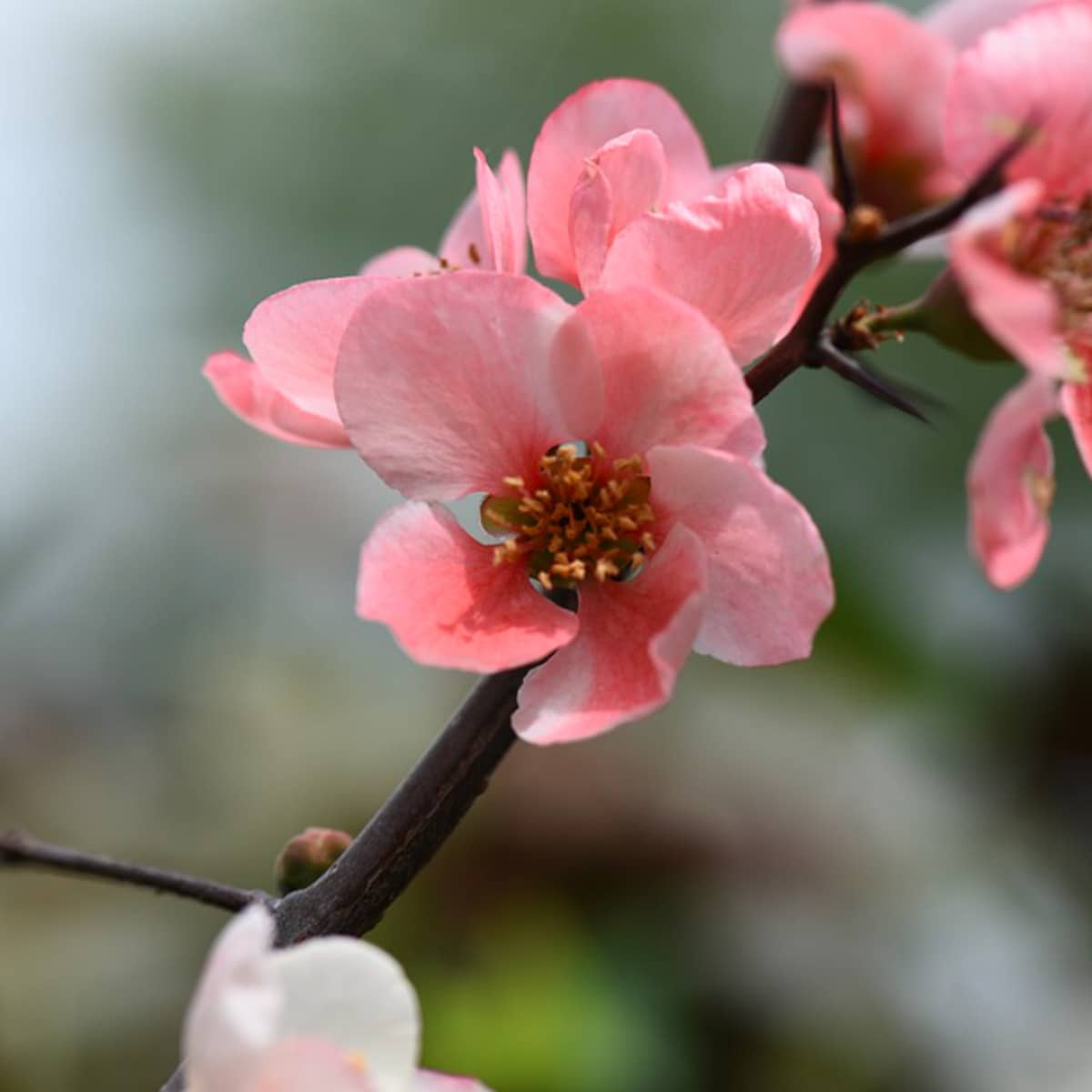 Die Birnenquitte Portugal blüht mittelspät, in der Regel in der zweiten Maihälfte. Ihre großen, zart rosafarbenen Einzelblüten bedecken die Zweige dicht und verwandeln den Baum in einen malerischen Blickfang. Während der Blüte verströmt der Baum einen feinen Duft, der Bienen und andere Bestäuber anzieht. Die Sorte ist selbstfruchtbar, was sie besonders wertvoll für Hausgärten macht, doch die Nähe anderer Quitten – etwa Leskovacka oder Champion – kann den Fruchtansatz und die Fruchtgröße zusätzlich verbessern. Die lange und stabile Blütezeit sorgt dafür, dass die Birnenquitte Portugal auch bei wechselhaftem Wetter zuverlässig trägt.
